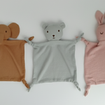 Give your baby the comfort of a soft, breathable cuddle companion with our Cotton Muslin Snuggly. Available in Pink Bunny, Blue Bear, and Chocolate Elephant.